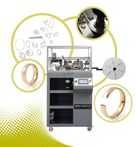 Questo tipo di macchinario può essere utilizzato per la produzione di catena fantasia, per produzione di orecchini / pendenti da tubo e per semilavorato di vario tipo in quanto questa macchina grazie a l’uso del PLC è in grado di creare forme senza dover cambiare nessun tipo di attrezzatura ma solo ed ESCLUSIVAMENTE modificando i dati inseriti da PLC.